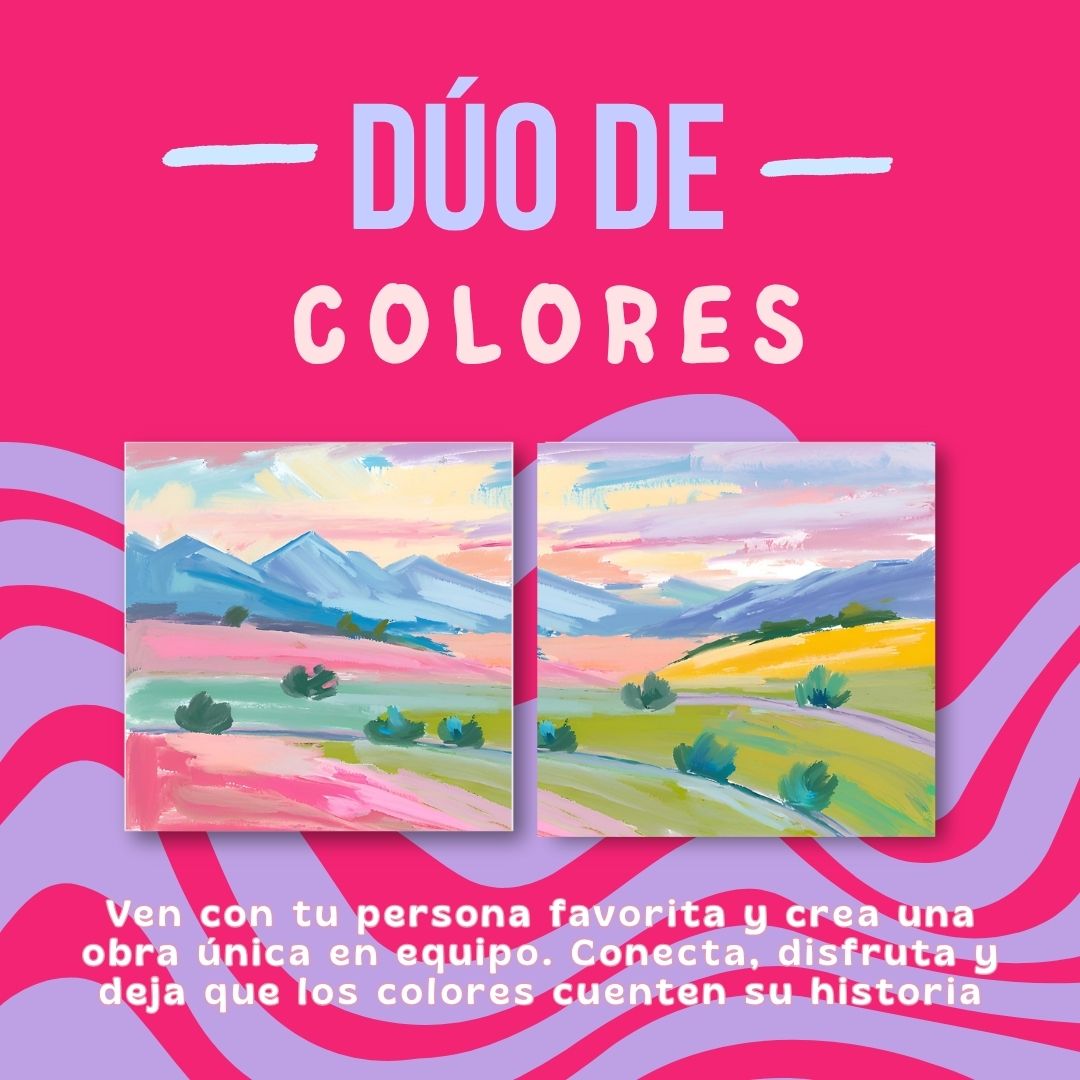 ✅ Lienzo compartido, dos lienzos complementarios o Tote Bag para pintar. 🌈 Tonos vibrantes para explorar nuevas combinaciones y estilos. 👩🎨 Guía de un maestro de arte para perfeccionar tu técnica. 📸 Sesión de fotos con tu obra terminada. 🍷 Bebidas especiales y bocadillos para acompañar la experiencia. ✨ ¡Y muchas sorpresas más para hacer este momento inolvidable!